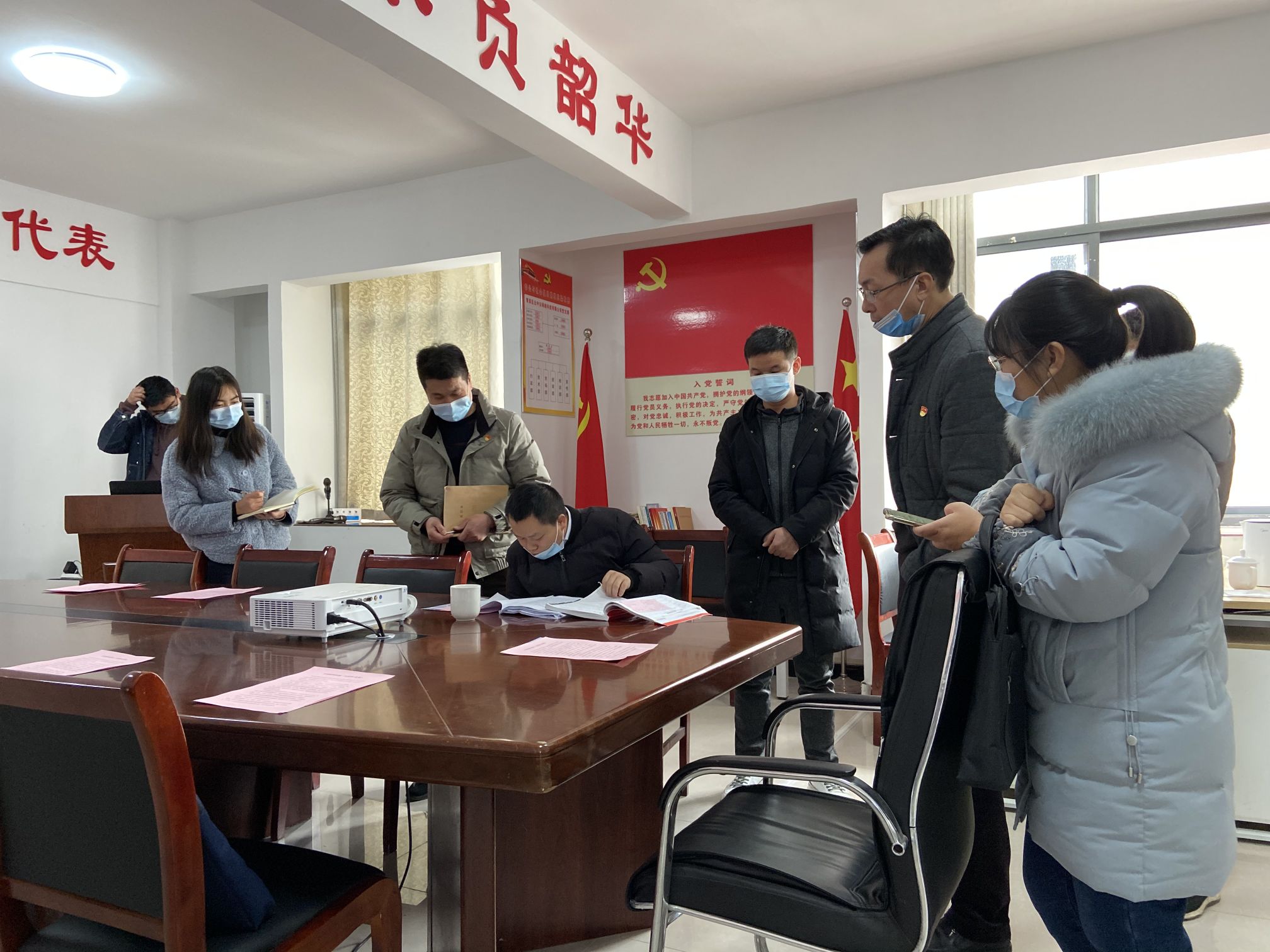 领导认真仔细查阅2020年吉安市党支部(总支)工作手册。